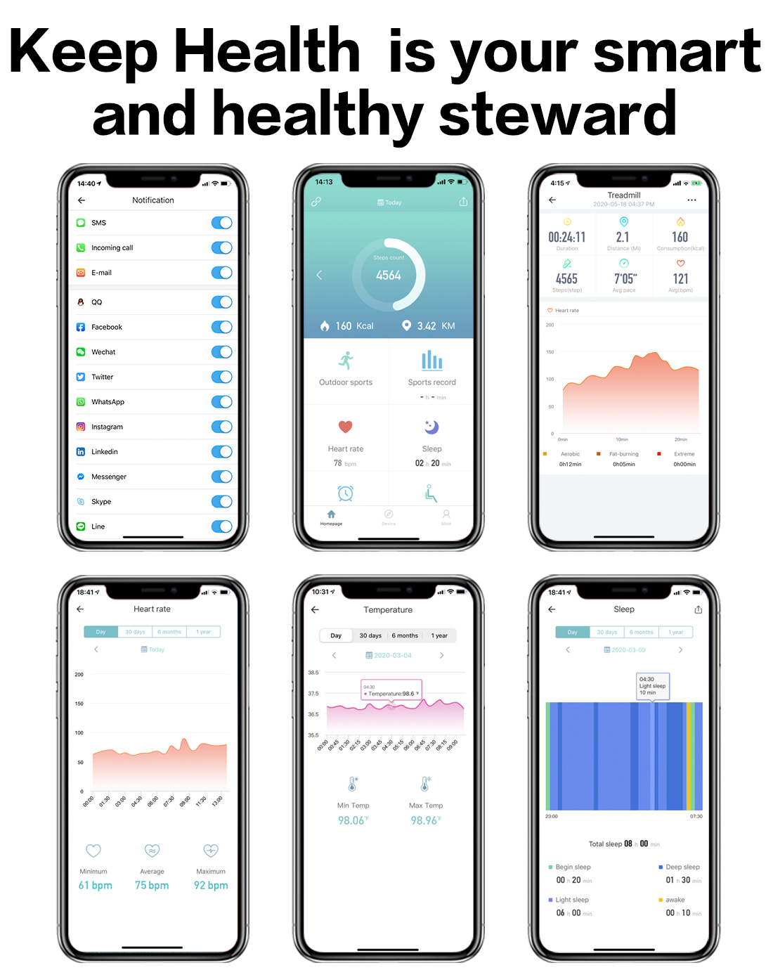 Sensors : Bluetooth sensor, G-sensor, Heart rate sensor, Temperature sensor